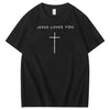 Jesus Loves You Pattern Print Crew Neck T-Shirt