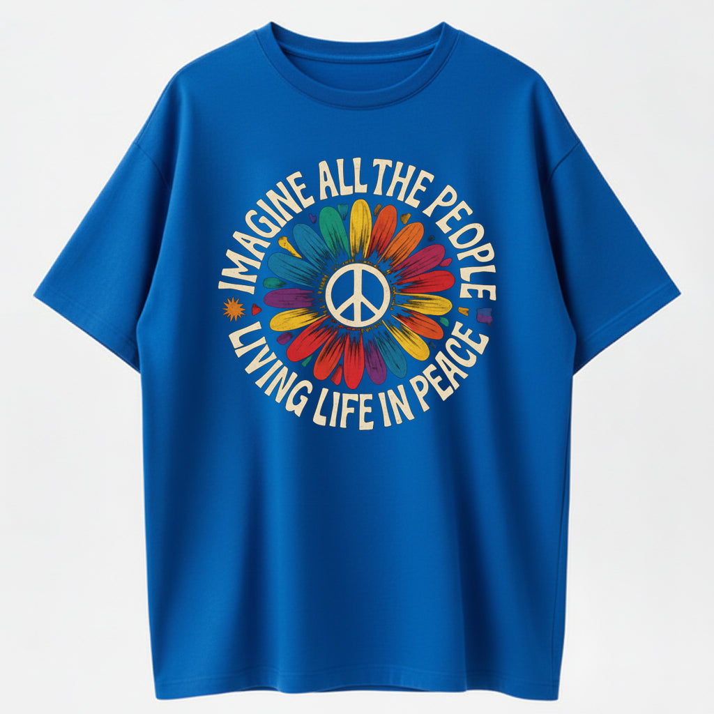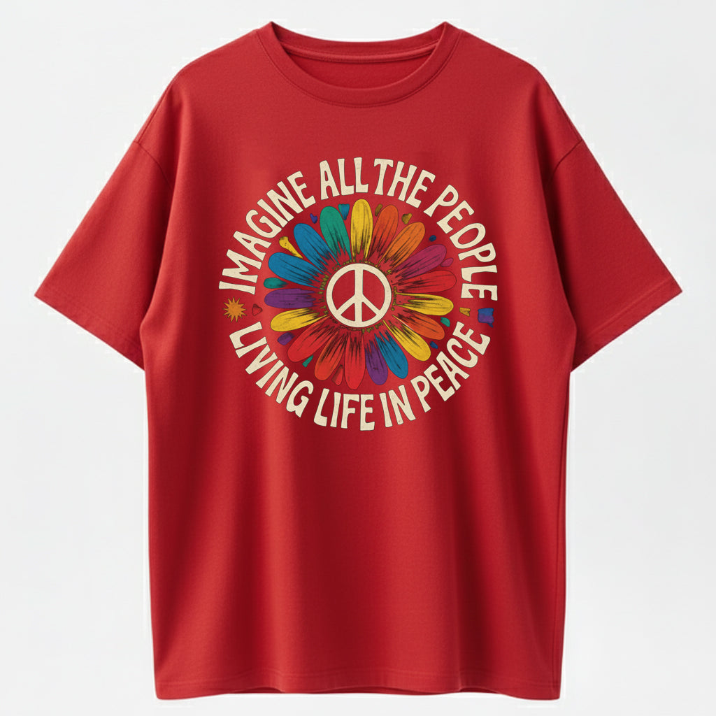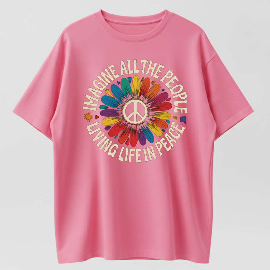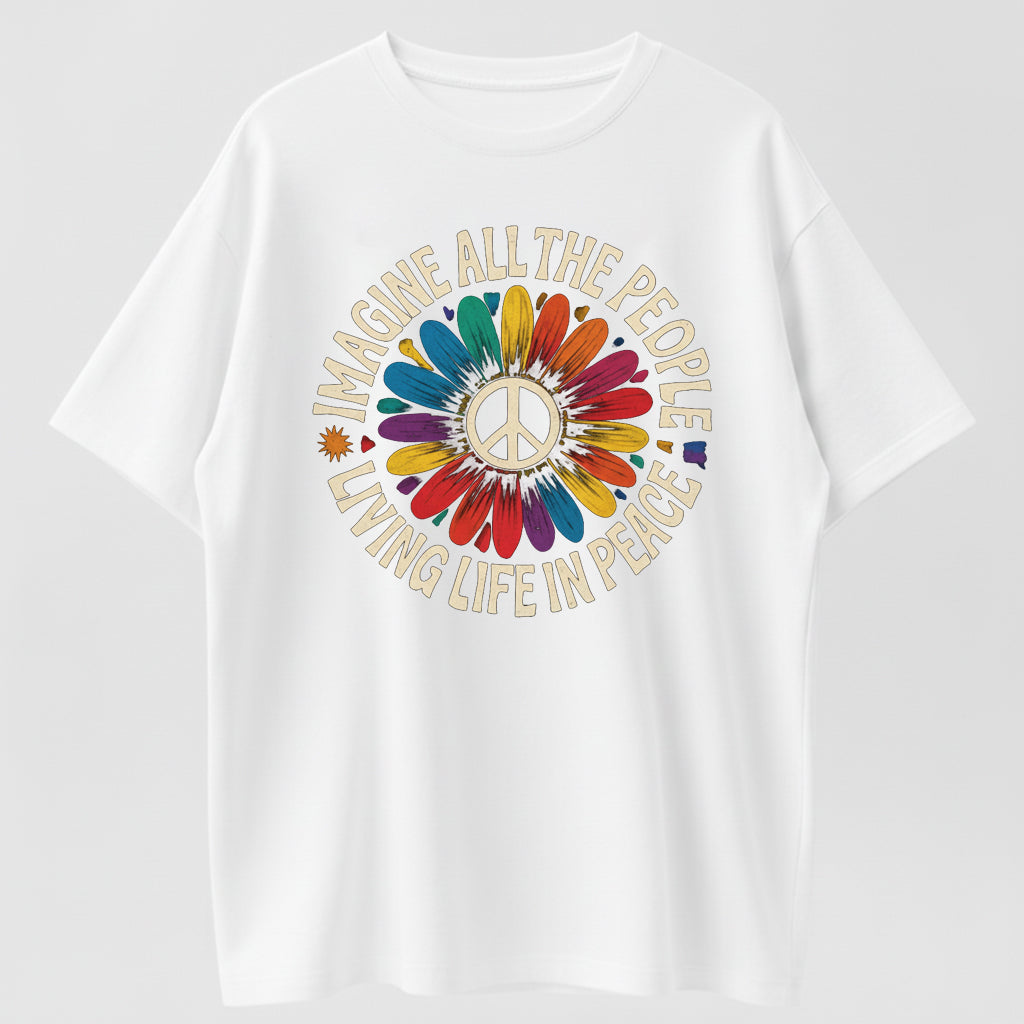 MAGINE Rainbow Flower Peace Sign Lyric Hippie Retro T-Shirt