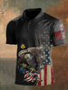 Men's Vintage Independence Day and Skull Print Button-Down Polo Shirt