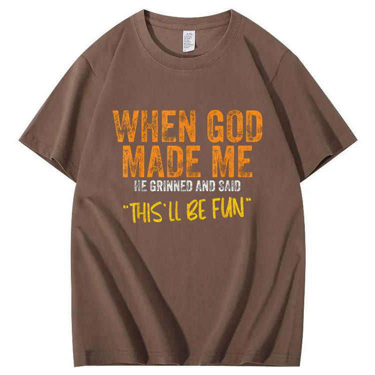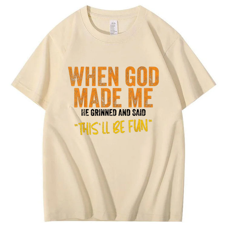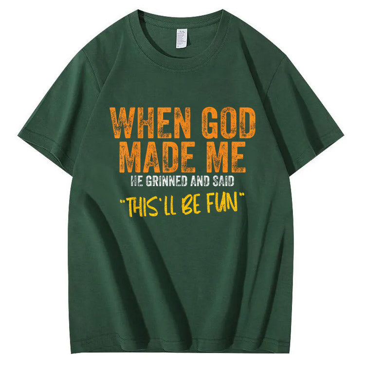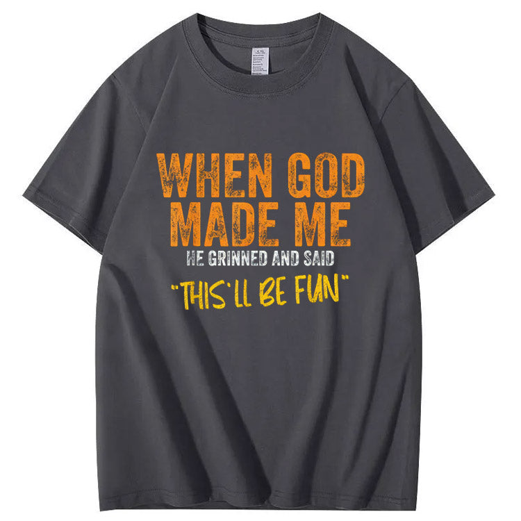 When God Made Me He Grinned And Said This'll Be Fun Pattern Print 100%Cotton T-Shirt