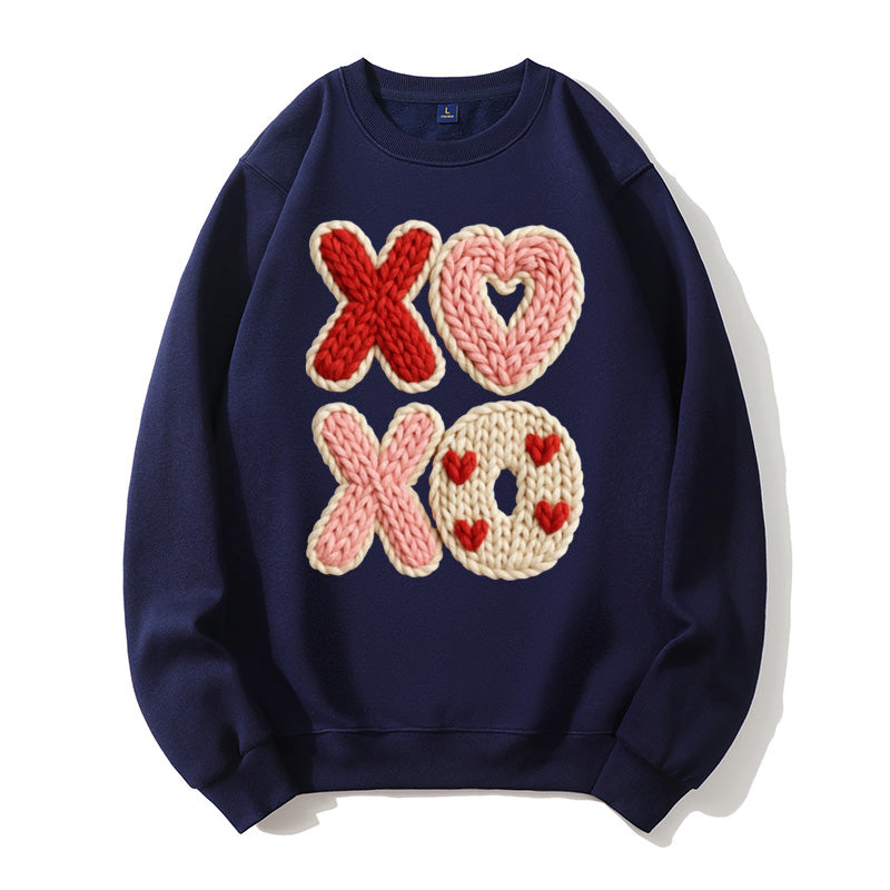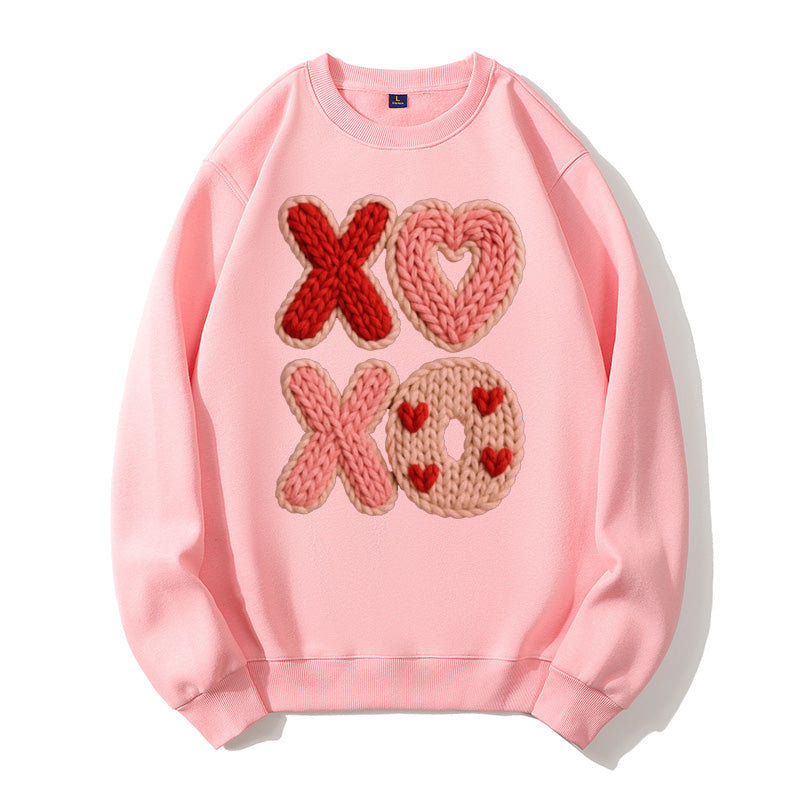 XO Hugs and Kisses Crochet Style Valentine's Day Cute Graphic Sweatshirt