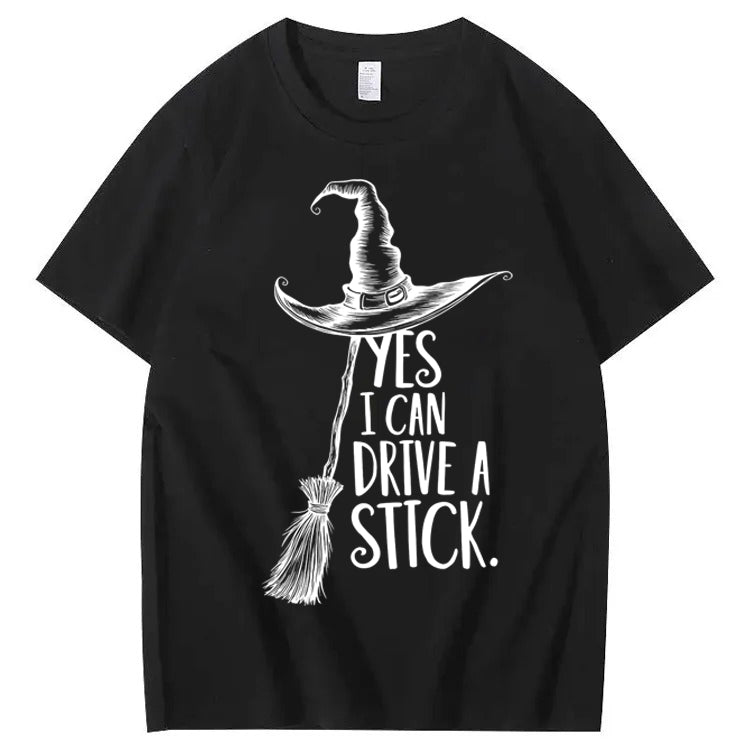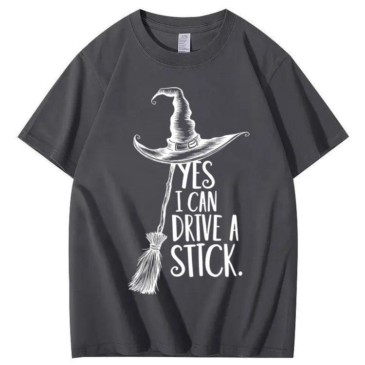 Yes I Can Drive a Stick 100% Cotton Witch T-Shirt