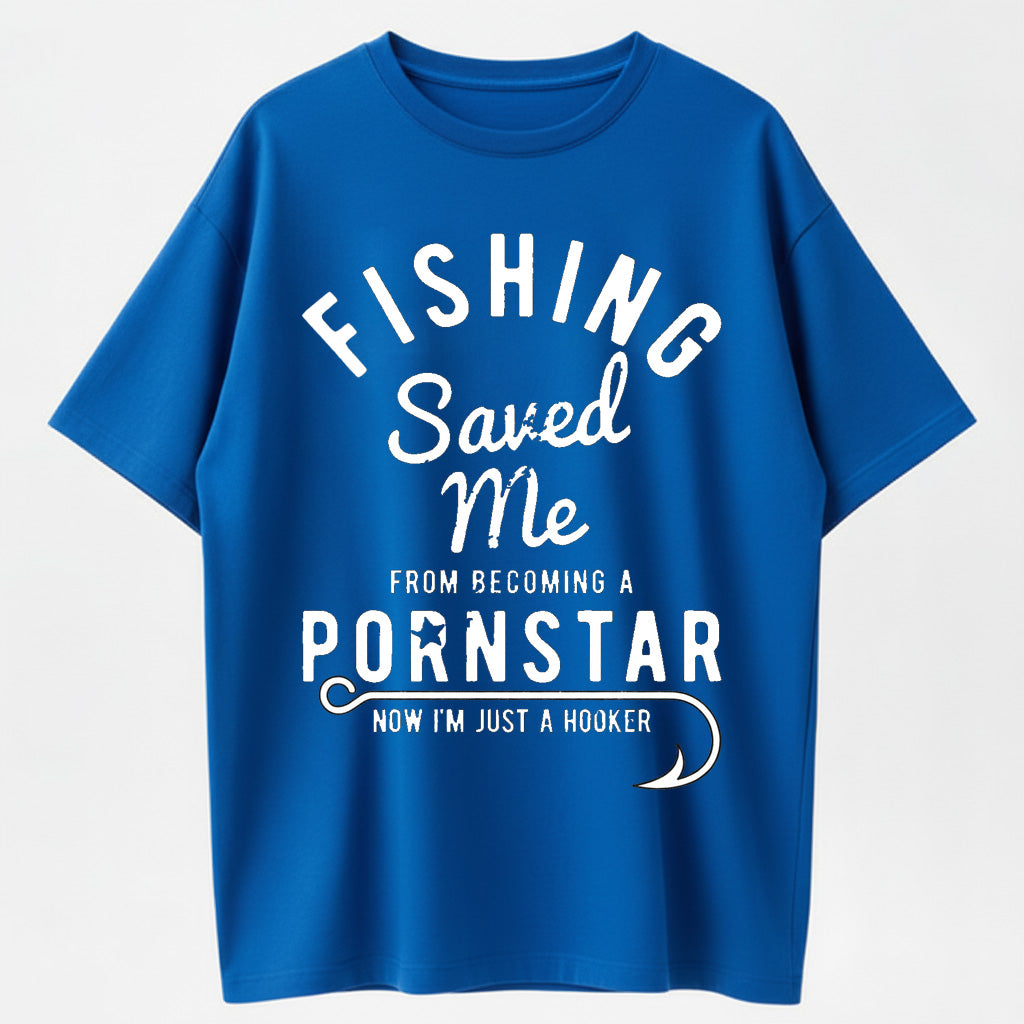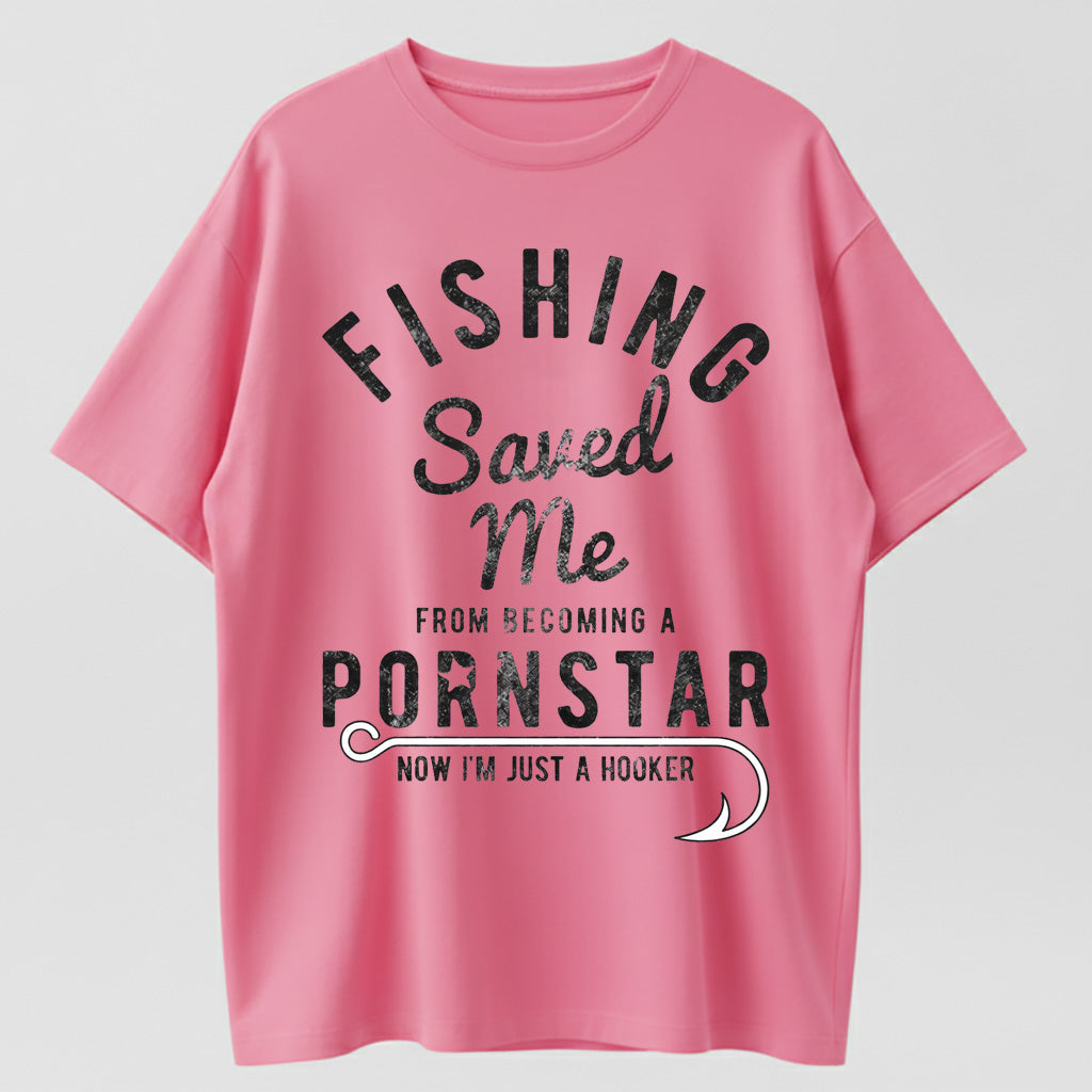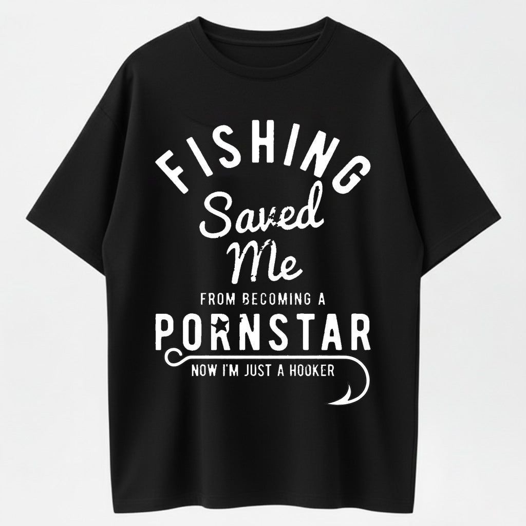 Mens Fishing Saved Me from Being A Pornstar Now Im Just A Hooker Funny T Shirt
