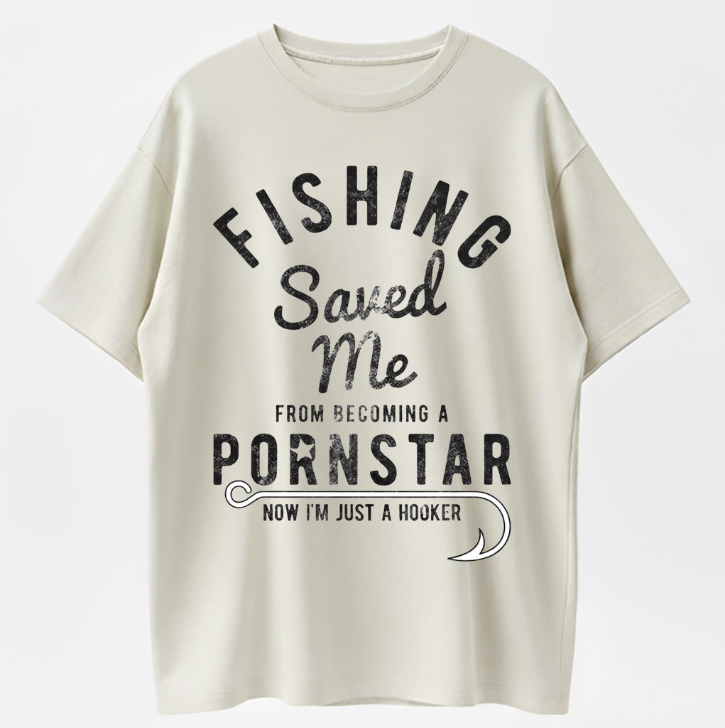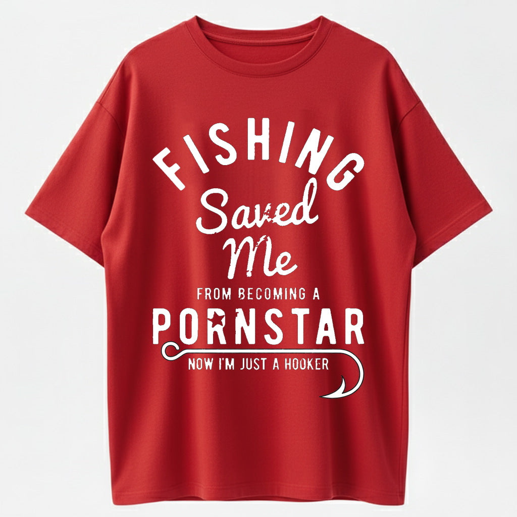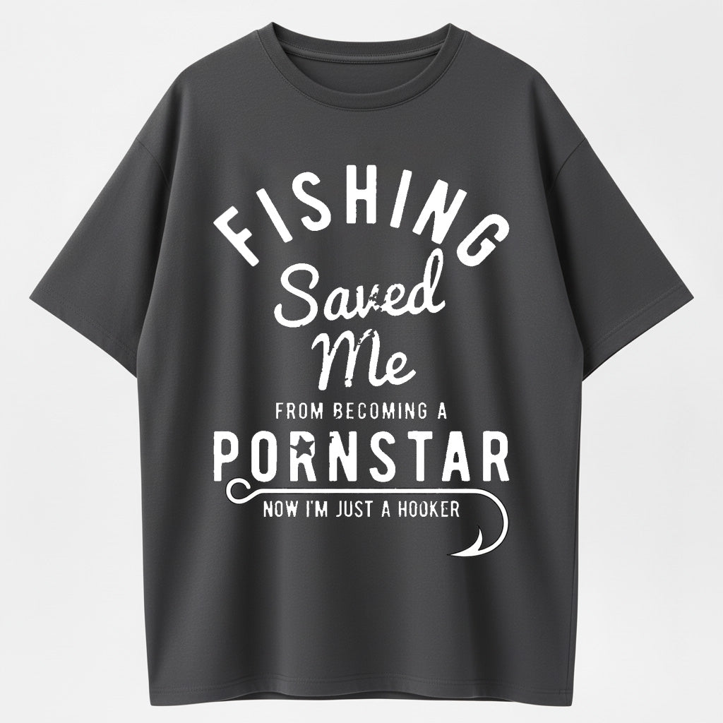 Mens Fishing Saved Me from Being A Pornstar Now Im Just A Hooker Funny T Shirt
