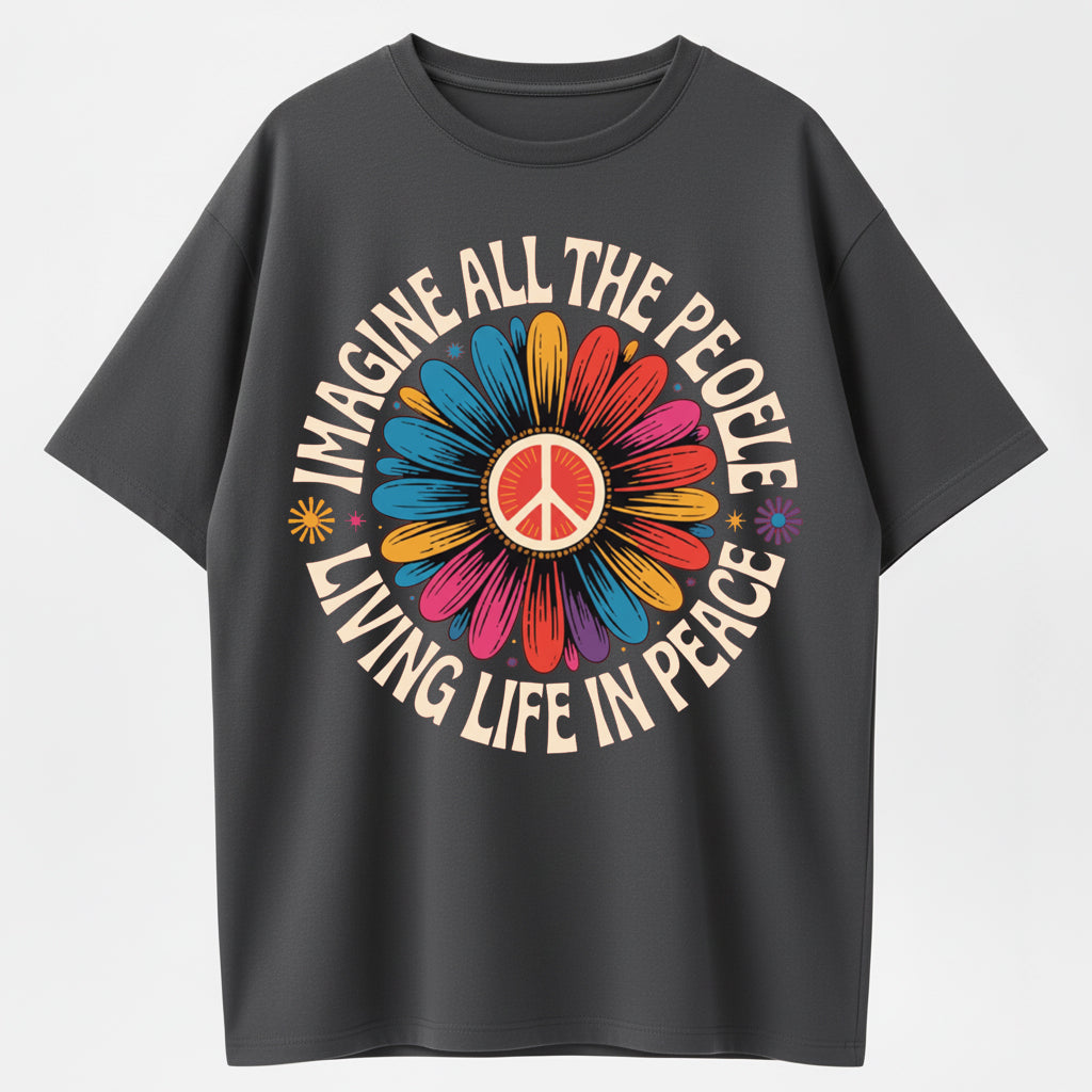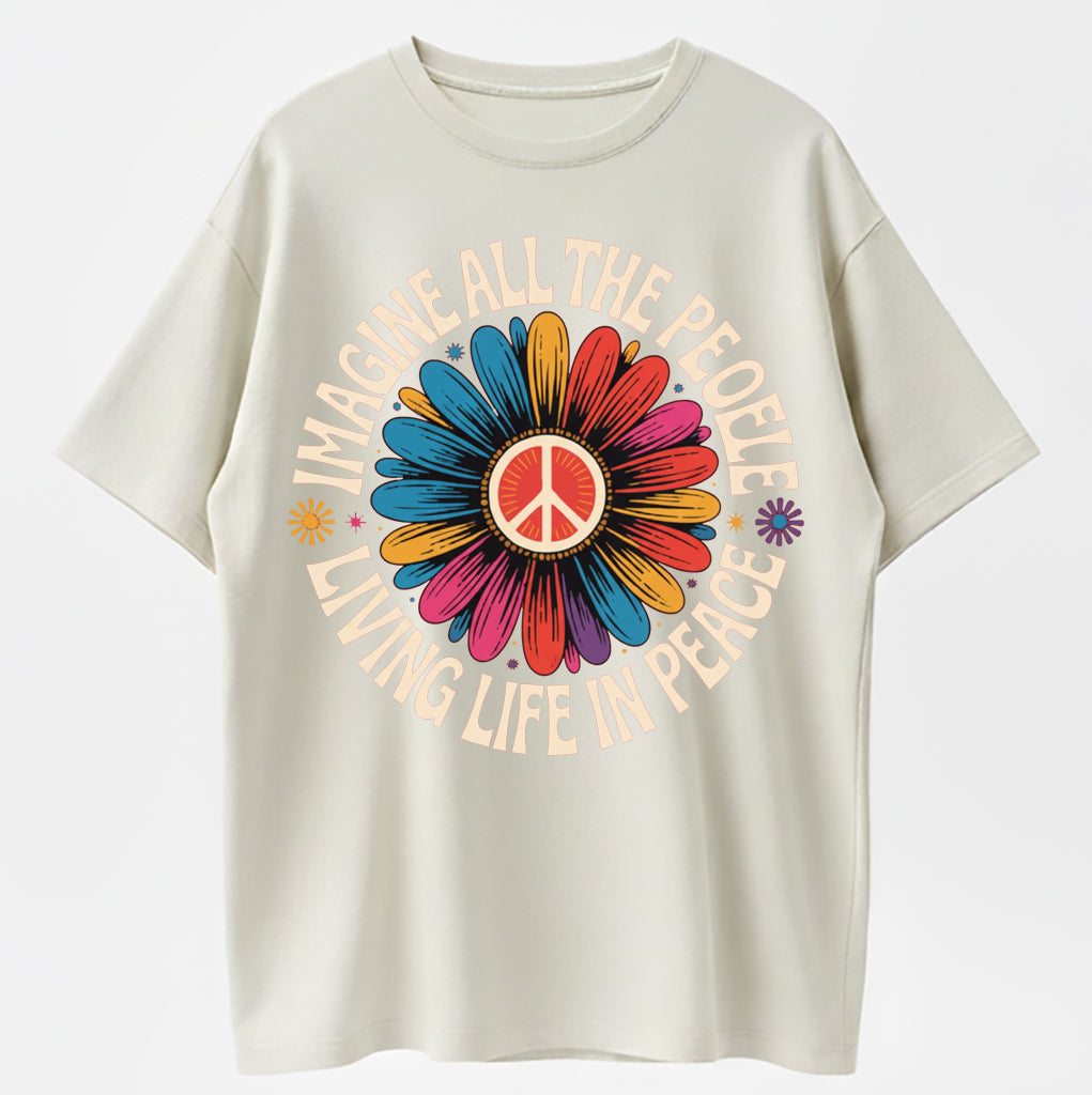 Imagine All the People Living Life in Peace Floral Daisy T-Shirt
