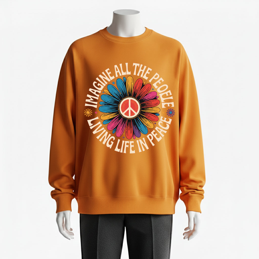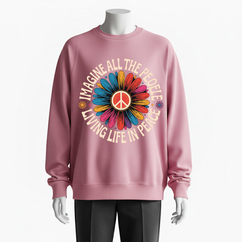 Imagine All the People Living Life in Peace Floral Daisy Sweatshirt
